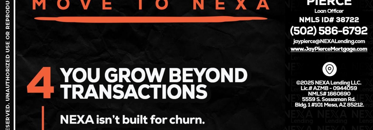 Hi, my name is Jay Pierce. I’m a Loan Officer with NEXA Lending LLC., offering personalized mortgage solutions, fast customized quotes, great rates and service with integrity.