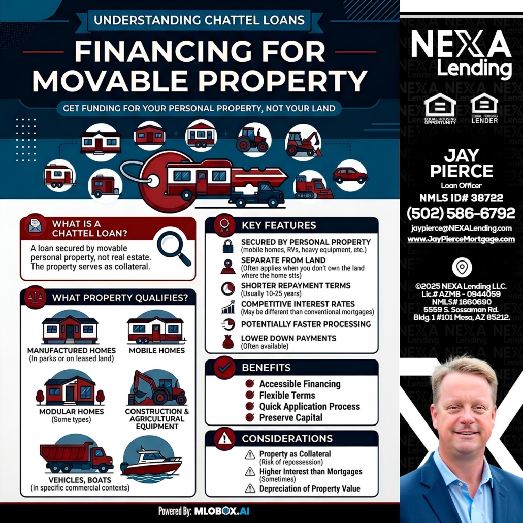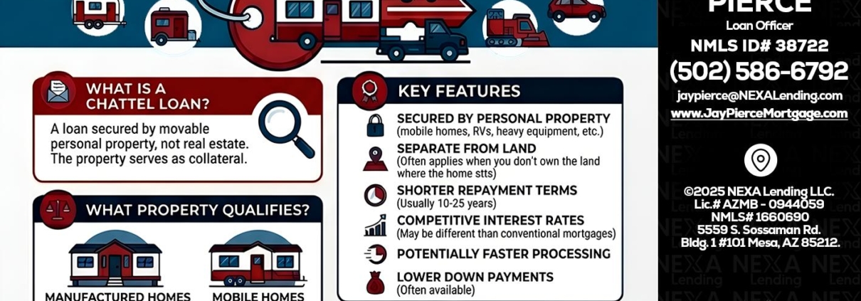 Hi, my name is Jay Pierce. I’m a Loan Officer offering personalized mortgage solutions, fast customized quotes, great rates and service with integrity. If you’re interested in learning more about the Chattel loan or any other, just let me know and I’ll walk you through your options.
