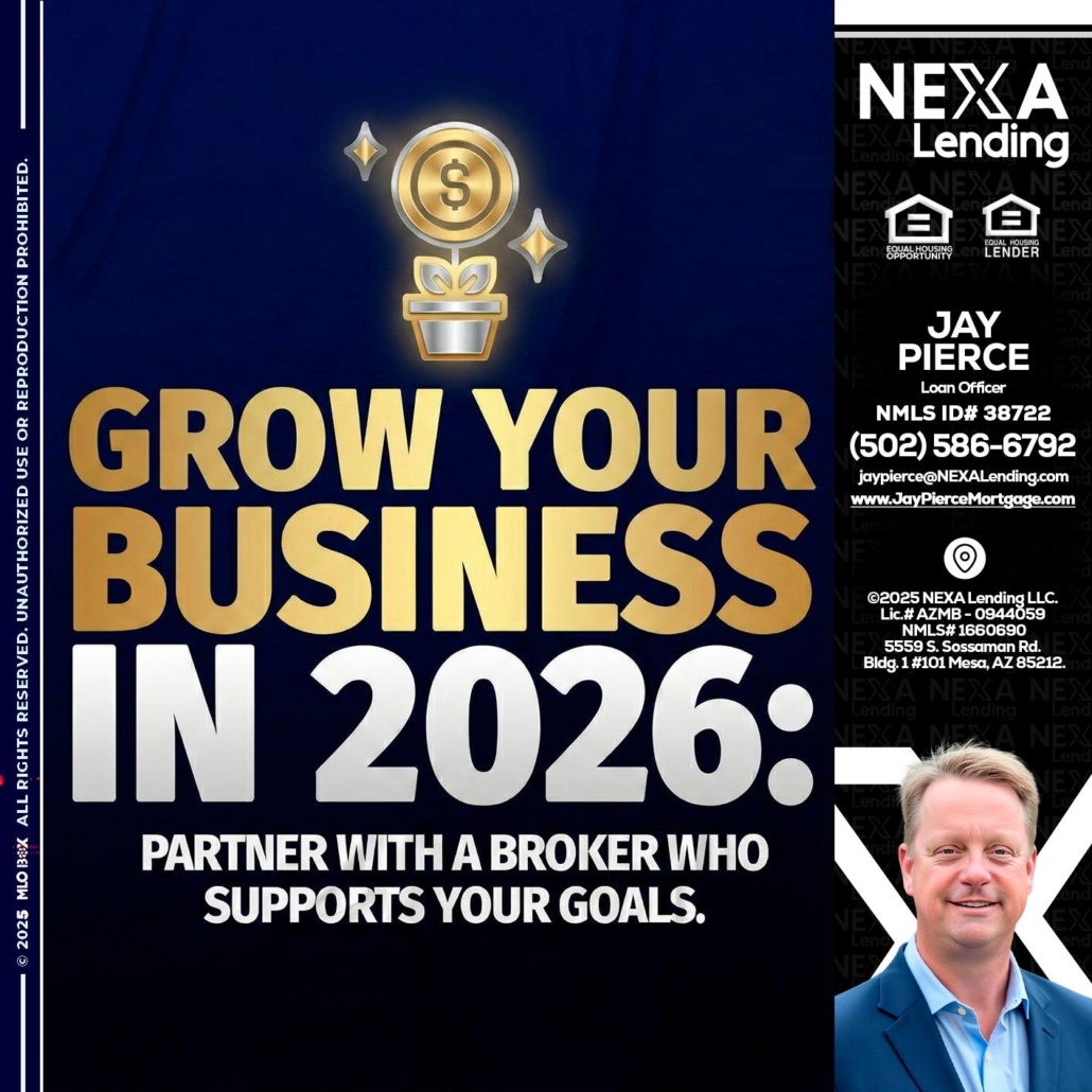Hi, my name is Jay Pierce. I’m a Loan Officer with NEXA Lending LLC., offering personalized mortgage solutions, fast customized quotes, great rates and service with integrity.