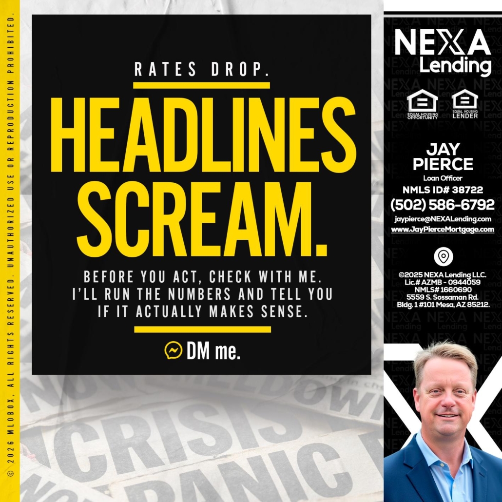 Hi, my name is Jay Pierce. I’m a Loan Officer with NEXA Lending LLC., offering personalized mortgage solutions, fast customized quotes, great rates and service with integrity.