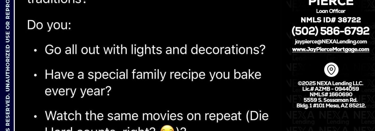 Hi, my name is Jay Pierce. I’m a Loan Officer with NEXA Lending LLC., offering personalized mortgage solutions, fast customized quotes, great rates and service with integrity.