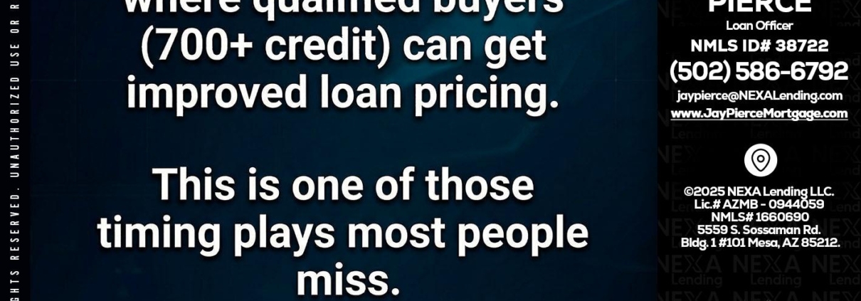 Hi, my name is Jay Pierce. I’m a Loan Officer with NEXA Lending LLC., offering personalized mortgage solutions, fast customized quotes, great rates and service with integrity.