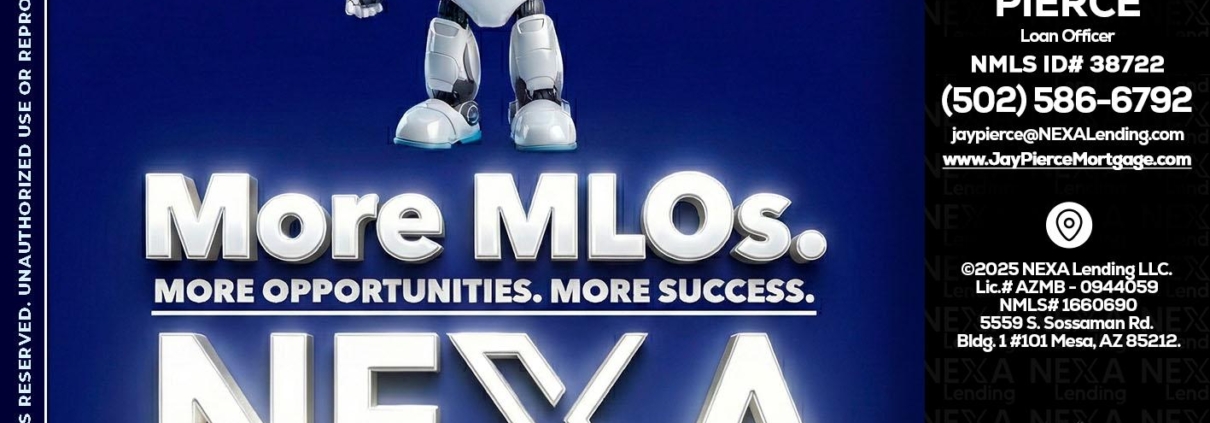 Hi, my name is Jay Pierce. I’m a Loan Officer with NEXA Lending LLC., offering personalized mortgage solutions, fast customized quotes, great rates and service with integrity.