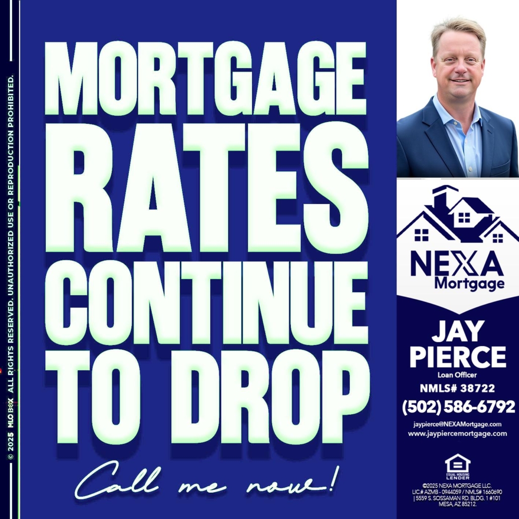 Hi, my name is Jay Pierce. I’m a Loan Officer with NEXA Mortgage LLC., offering personalized mortgage solutions, fast customized quotes, great rates and service with integrity.