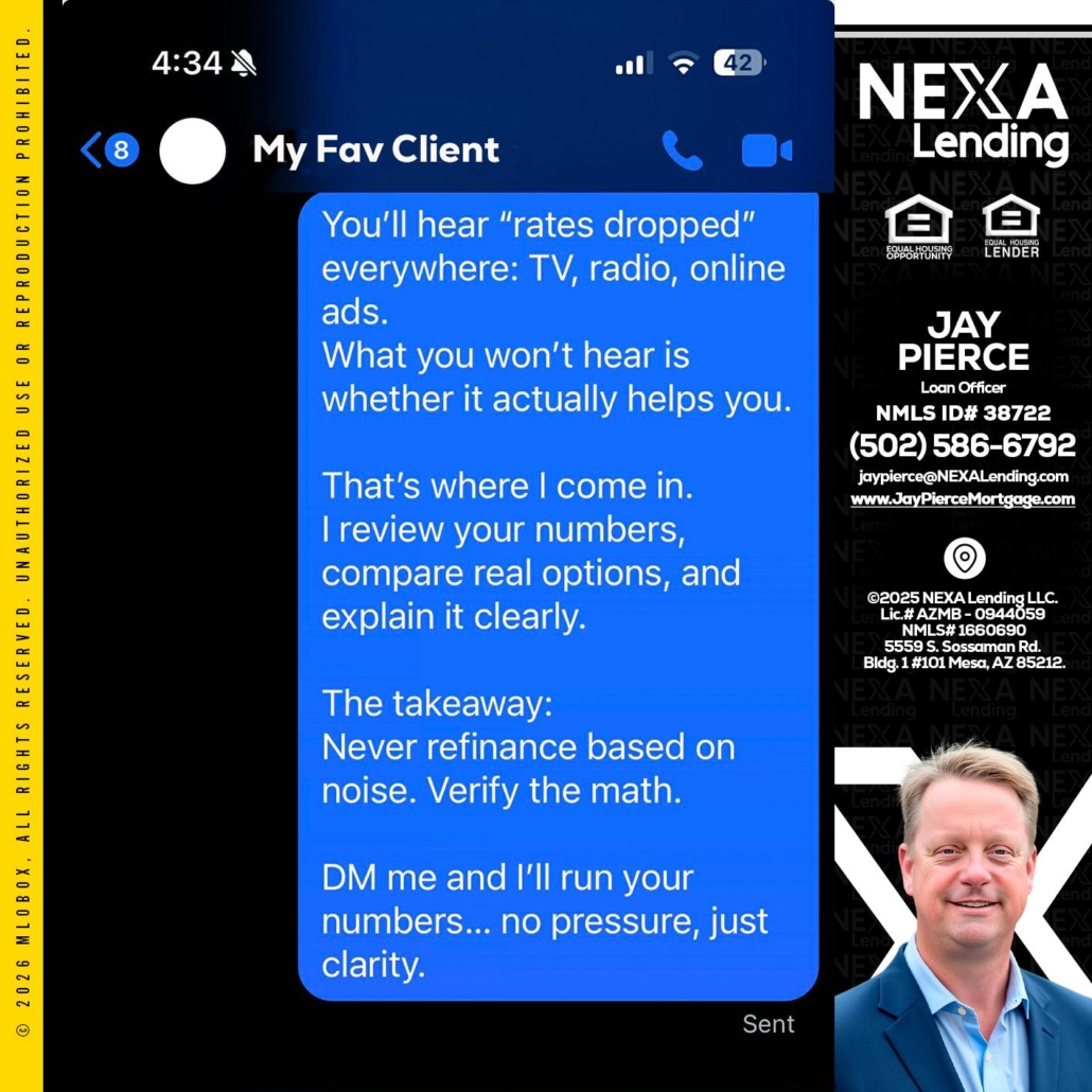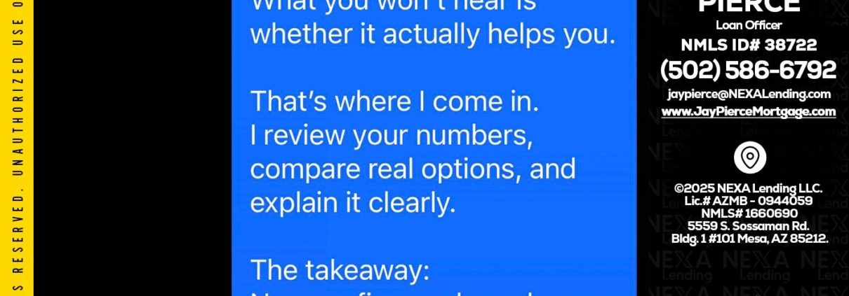 Hi, my name is Jay Pierce. I’m a Loan Officer with NEXA Lending LLC., offering personalized mortgage solutions, fast customized quotes, great rates and service with integrity.