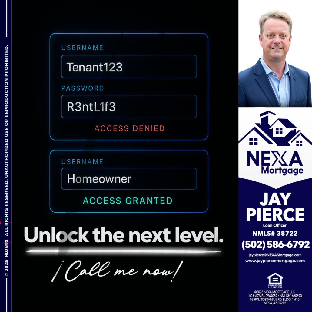 Hi, my name is Jay Pierce. I’m a Loan Officer with NEXA Mortgage LLC., offering personalized mortgage solutions, fast customized quotes, great rates and service with integrity.